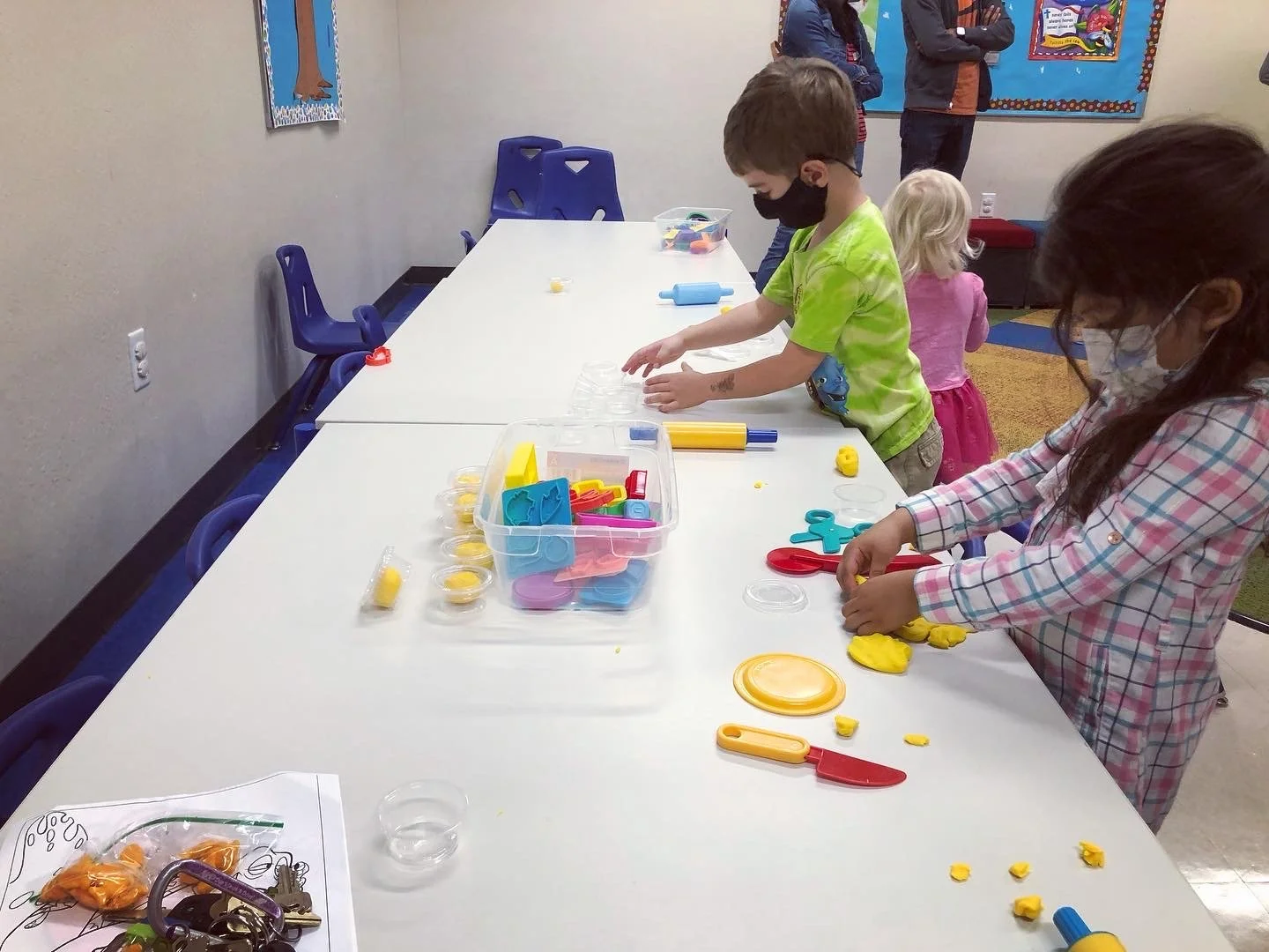 Playdough, bounce houses, big bricks, tunnels, dinosaurs, train table, playhouse, pretend kitchen, infant play space, ride on toys, coloring room, indoor bowling, indoor basketball... Woah and that’s just the play options!!