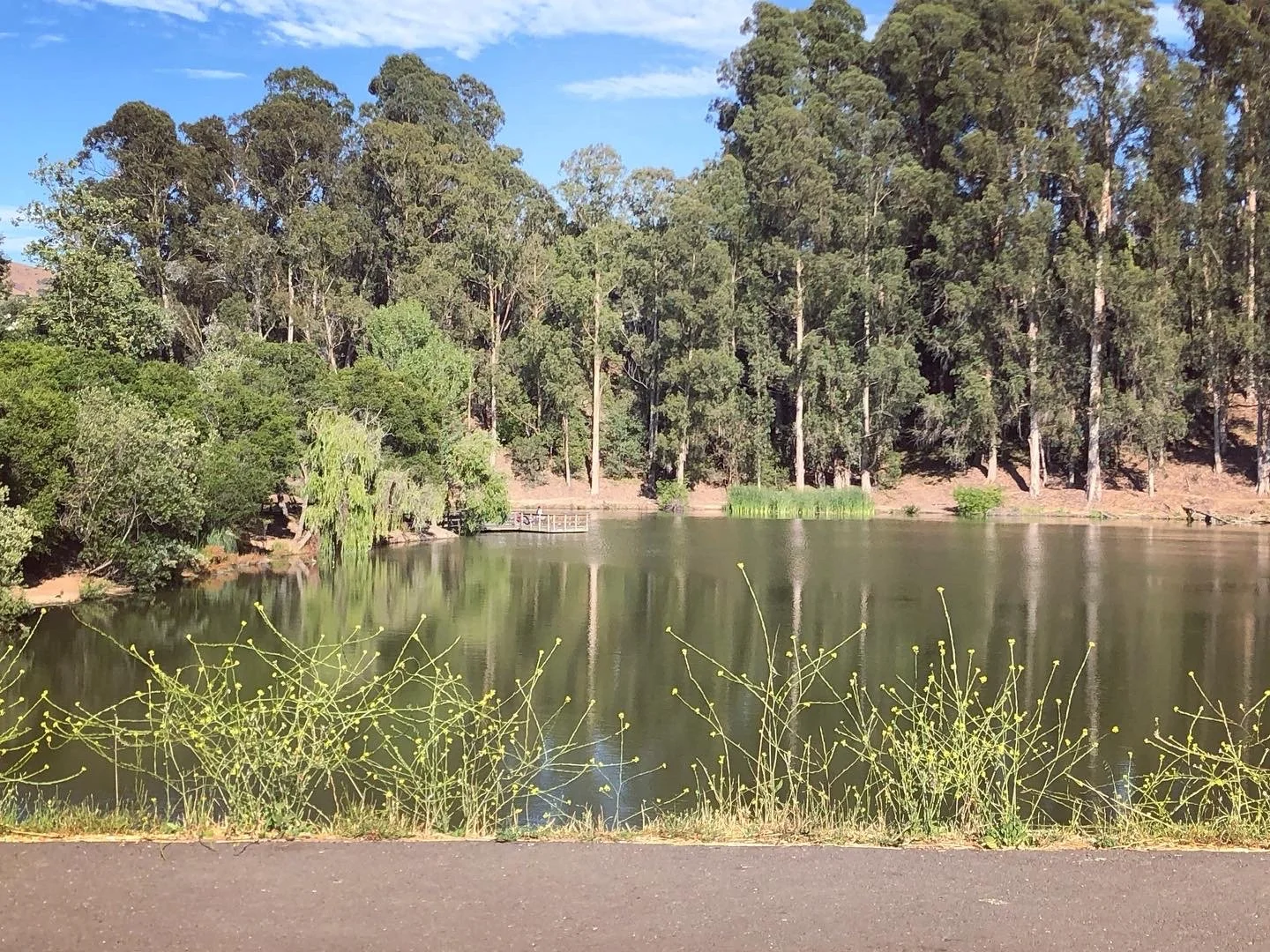 Fishing is allowed in the river and lake area adjacent to the lagoon. Daily $5 permit and license required. There’s a small dock where fish, turtles, and various birds can be seen. Walking around the “backside” of the lake is another great alternative if swimming isn’t available. This trail eventually connects to the Chabot to Garin Regional Trail.