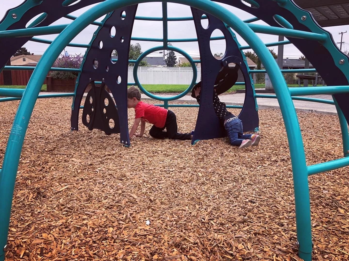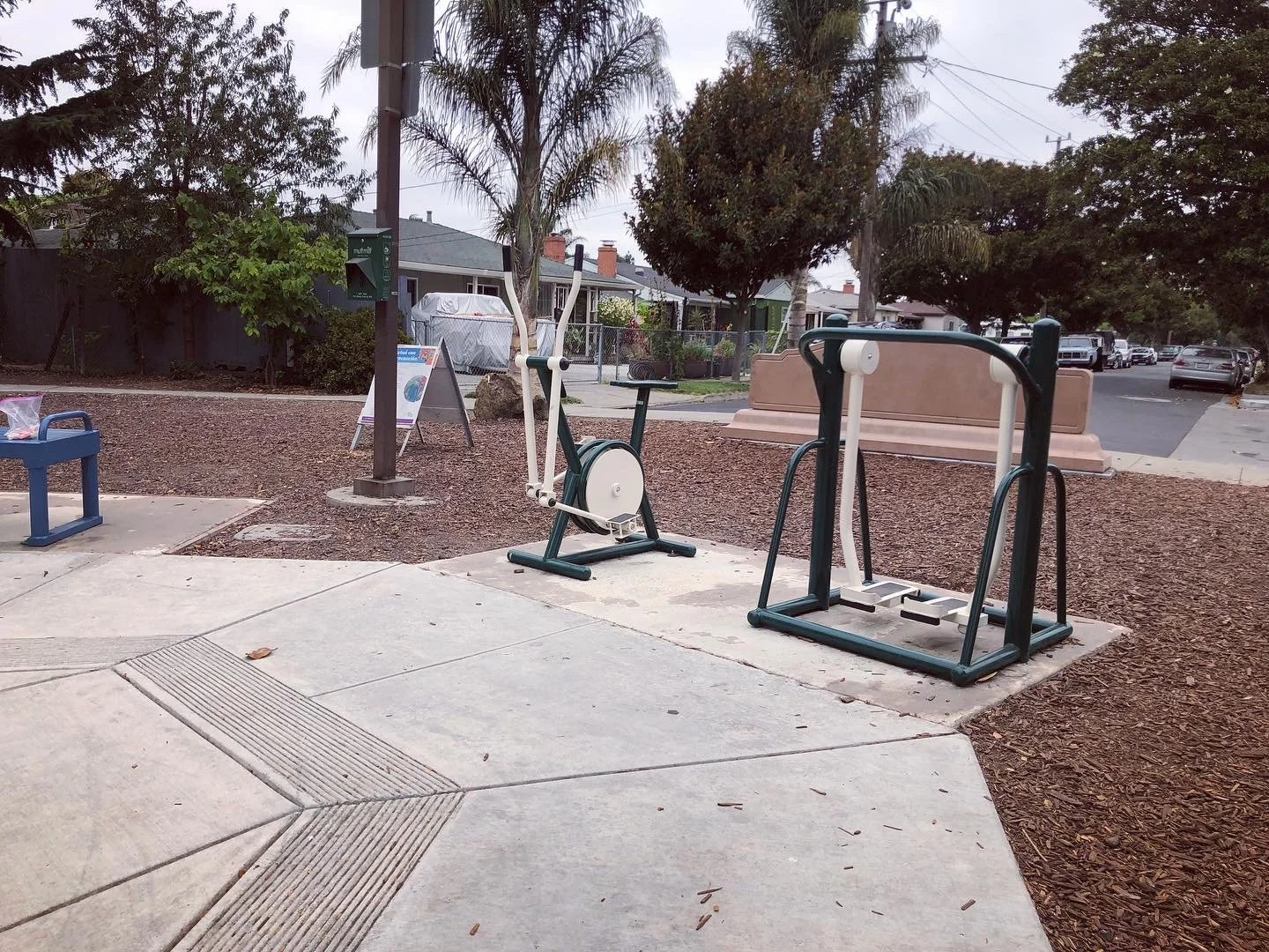 Surrounding the playground is exercise equipment.