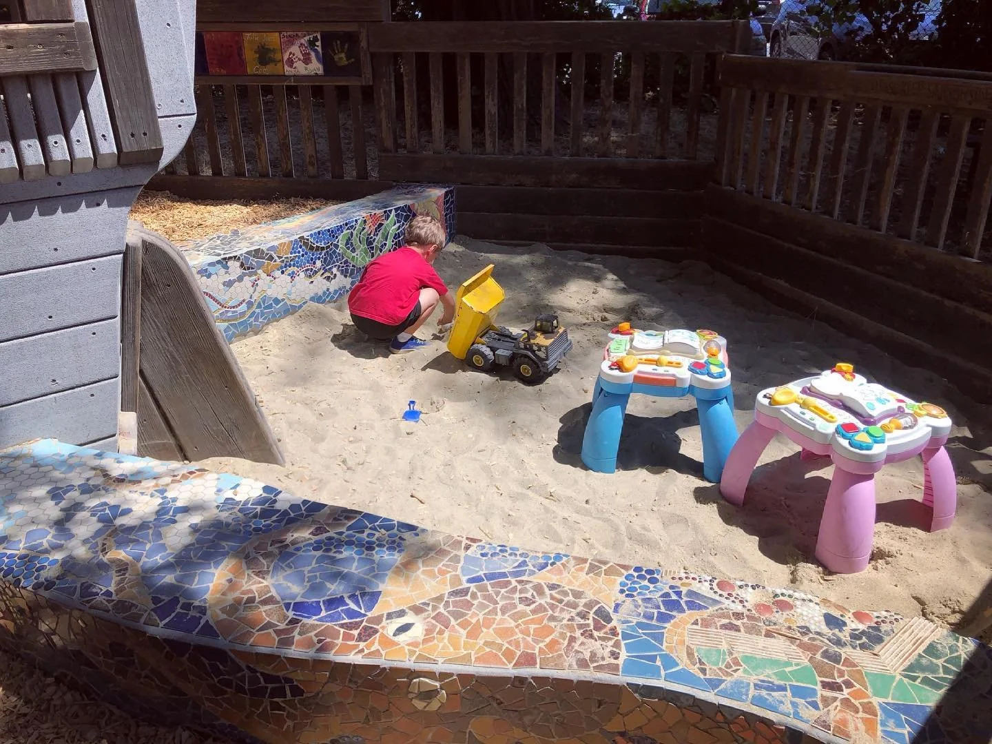 Parks with a sandbox Don Castro Regional Recreation Area, Hayward Codornices Park, Berkeley Becky Temko Tot Park, Berkeley Marina Park, San Leandro Huber Park, El Cerrito Niles Canyon Community Park, Fremont Paddock Park, San Mateo Fire Truck Park, San Ramon Imagine Playground, Dublin Little Frog Park, Oakland Ryder Court Park, San Mateo Twin Bridges Park, Hayward Martin Luther King Jr. Regional Shoreline, Oakland Cull Canyon Recreation Center, Castro Valley Orloff Park, Pleasanton Always Dream Play Park, Fremont May Nissen Park, Livermore San Pablo Park, Berkeley Jean Sweeney Open Space, Alameda Cannery Water Tower Park, Hayward Yerba Buena Children’s Playground, San Francisco College Heights Park, Hayward Shannon Park, Dublin Memorial Park, San Ramon Strawberry Creek Park, Berkeley King School Park, Berkeley